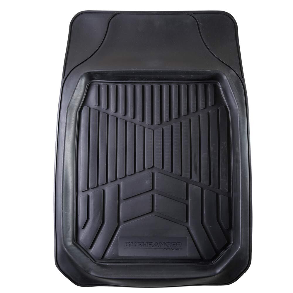 The Bushranger Dirt Blocka Mat isdesigned with deep edges to capture all the debris that is brought into the vehicle, from sand, dirt, mud, snow, even water can be contained within the mats. Made from a solid rubber construction that retains integrity and shape and easy to clean. A 5cm high perimeter ridge to keep debris enclosed from your interior material. Underside of mat features ribs to prevent mat slippage. Generous size to suit even the largest 4x4, they can also be trimmed to suit your foot well.
