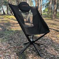 This chair features a wide seat and high backrest, complete with a built-in adjustable pillow for head support, ensuring optimal comfort wherever you go. Despite its comfortable design, the Revolver Chair remains exceptionally compact and lightweight, making it easy to transport and store.
