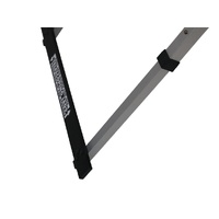 The lightweight, aluminum design folds flat and stores away neatly.