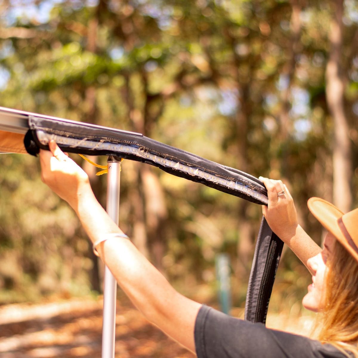 HardKorr's Lifestyle Ezy-Fit LED strip is very simple to set up, and is ideally suited to be used in tent awnings or anywhere you want to set up a light quickly. You can use the Velcro strips sewn into the back to quickly attach to a pole, or use the inbuilt sail track to slide straight into the channel of most awnings or annexes.