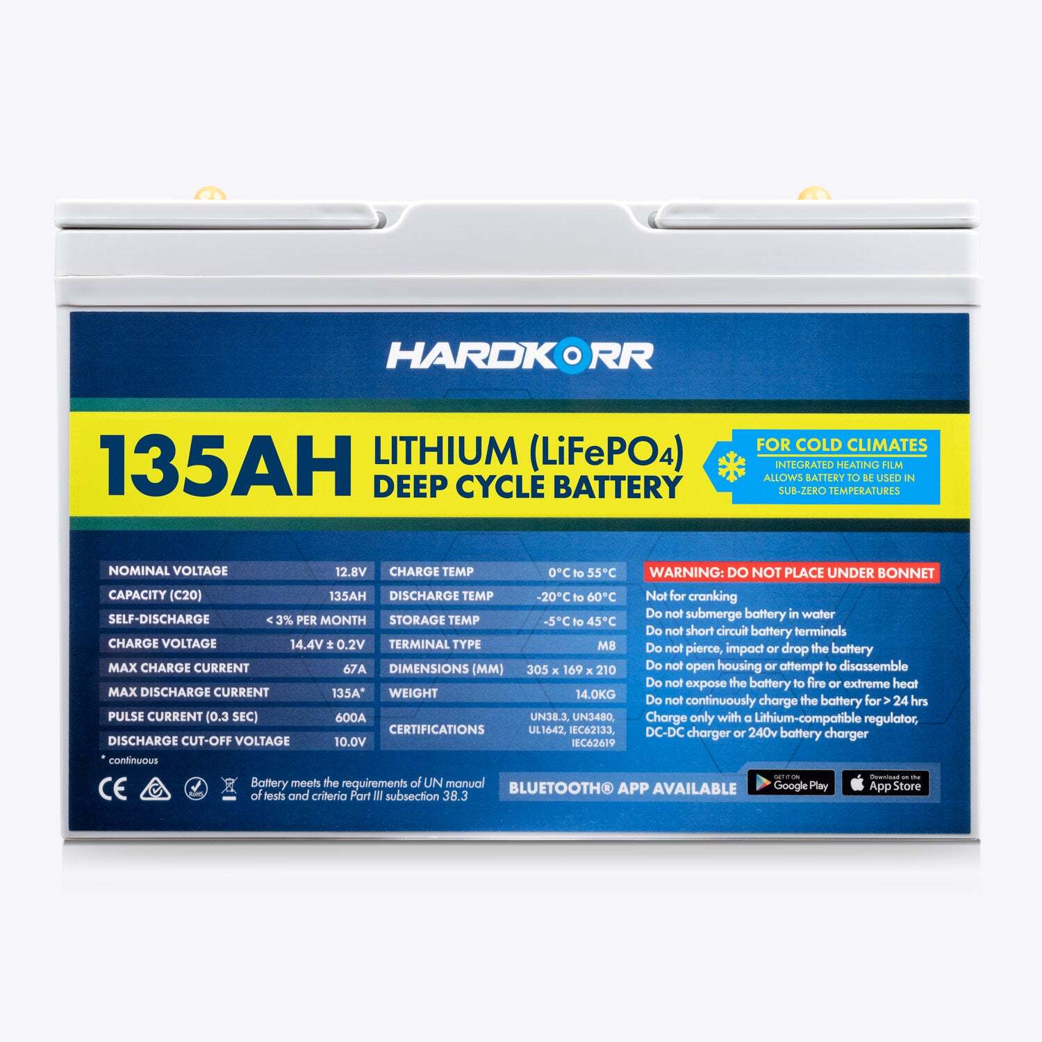HARDKORR 135AH LIFEPO4 DEEP CYCLE LITHIUM BATTERY WITH Bluetooth