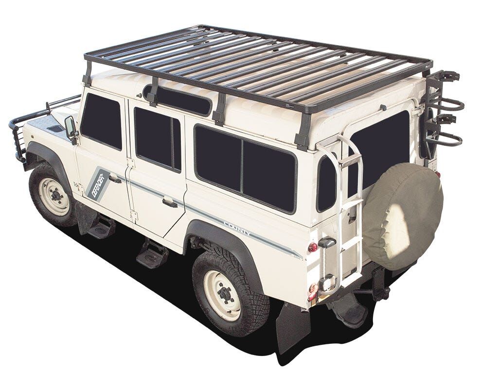 This 2772mm/109'' long full-size Slimline II cargo carrying roof rack kit for the Land Rover Defender 110 contains Slimline II Tray and Wind Deflector, as well as 8 Gutter Mount legs for mounting the Tray to the vehicle. This taller kit has space for mounting the Front Runner tables or other compatible accessories under the rack. It installs easily with no drilling required.