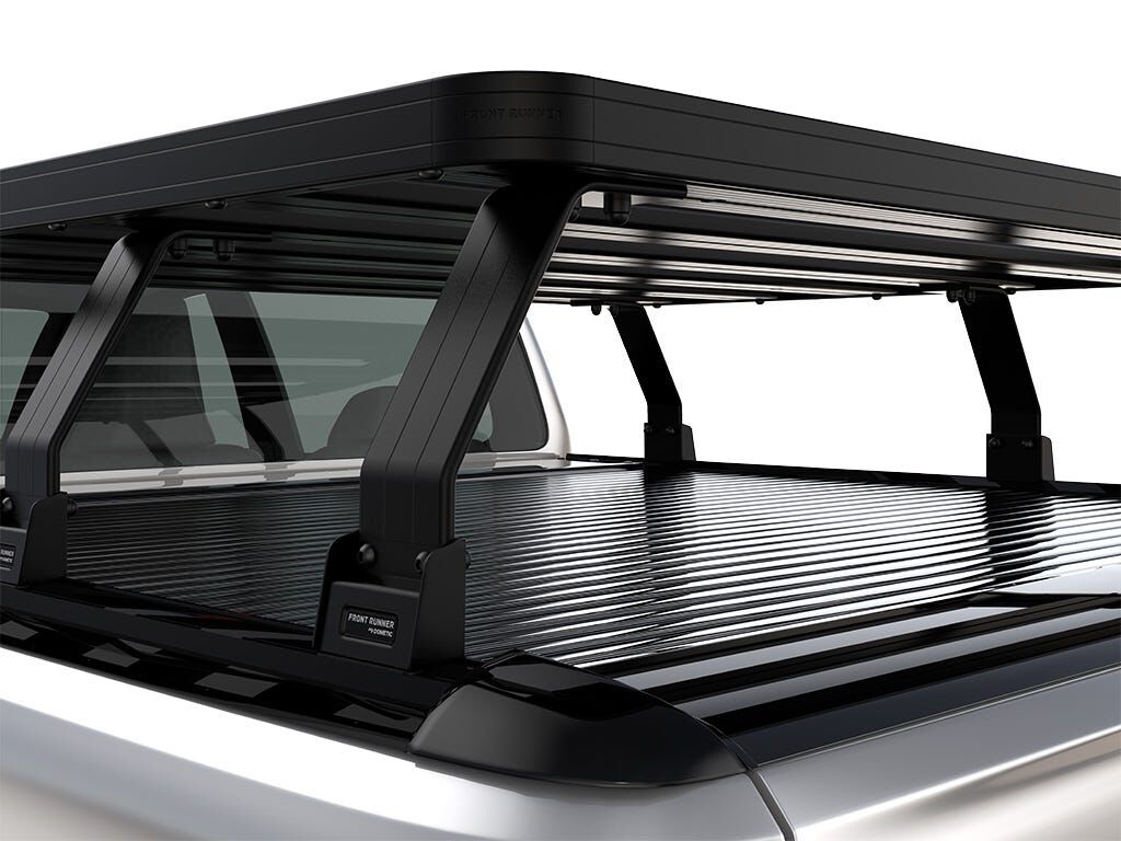 This kit creates a full-size rack that sits above your Pickup Truck's load bed when fitted with a Roll Top Cover. This Slimline II cargo carrying rack kit contains the Slimline II tray (1425mm x 1358mm) and 6 Pickup Roll Top Leg Mounts that fit into the existing factory/OEM tracks in your Roll Top Cover.