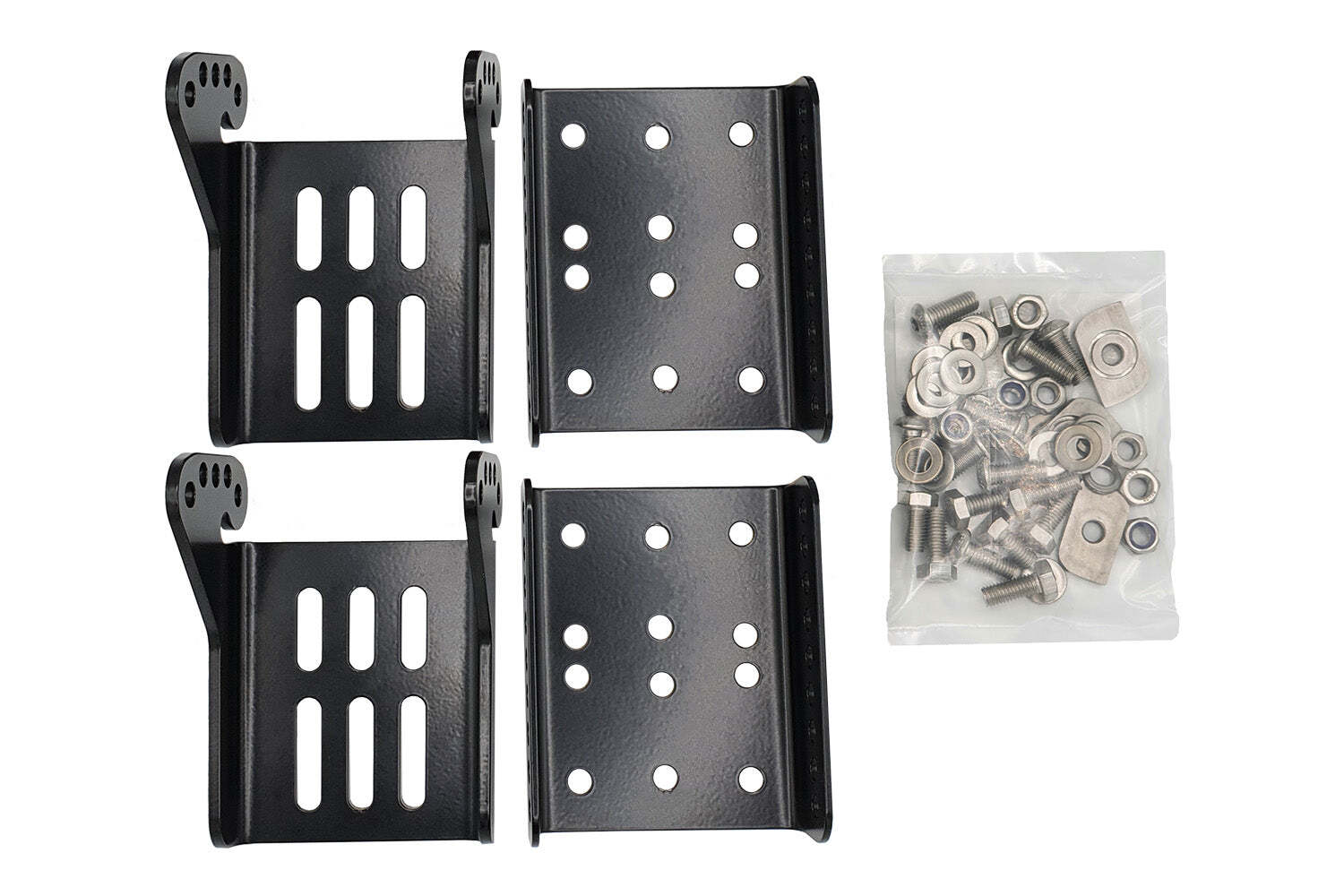 The RacksBrax HD Adjustable Brackets have been specifically designed for the upright portion to fit the RacksBrax HD Hitch although may be used without an HD Hitch to fit accessories where mount points are at 50mm centers.