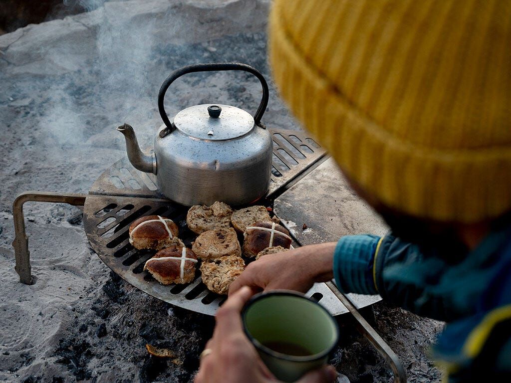 Grill and griddle sections for campfire cooking options.