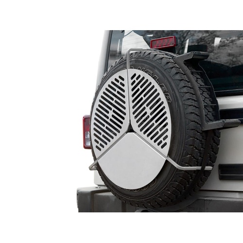 This ingenious, stainless steel cooking grate, stores over your spare wheel and takes up virtually no space.