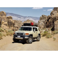This 1964mm/77.3'' long full-size Slimline II cargo roof rack kit contains the Slimline II Tray, Wind Deflector and 2 Foot Rails to mount the Slimline II Tray to your Toyota FJ Cruiser. It easily installs using the existing factory mounting points. No drilling required.